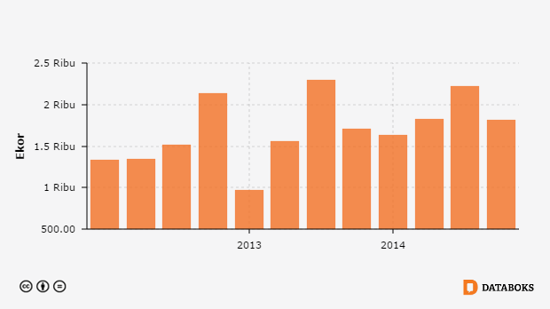 Data Triwulanan Pemotongan Sapi, Sapi di Bengkulu 2009 - 2014