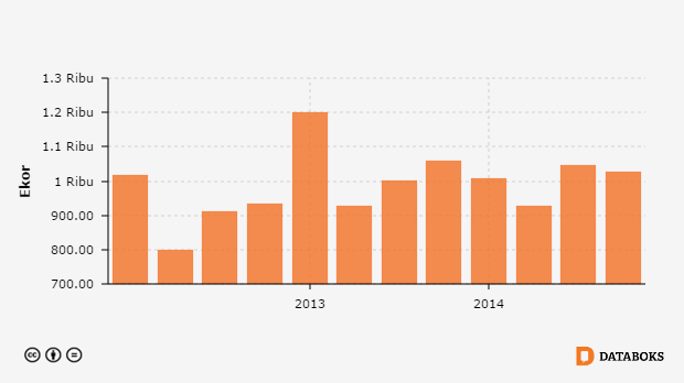 Data Triwulanan Pemotongan Sapi, Sapi di Maluku 2009 - 2014
