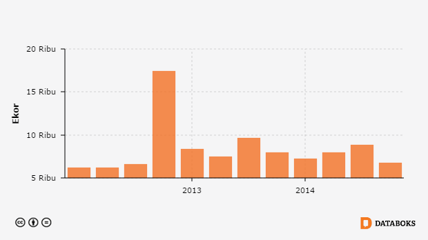 Data Triwulanan Pemotongan Sapi, Sapi di Sumatera Barat 2009 - 2014