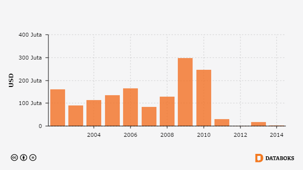 Nilai Ekspor Biji Coklat ke Amerika Serikat 2002 - 2014