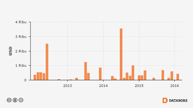 Nilai Ekspor Kakao Indonesia ke Indonesia 2012 - 2016