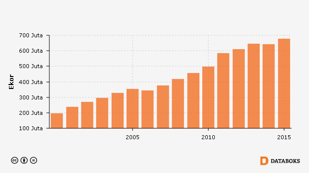 Populasi Ayam Ras Pedaging menurut Provinsi di Jawa Barat 2000 - 2015