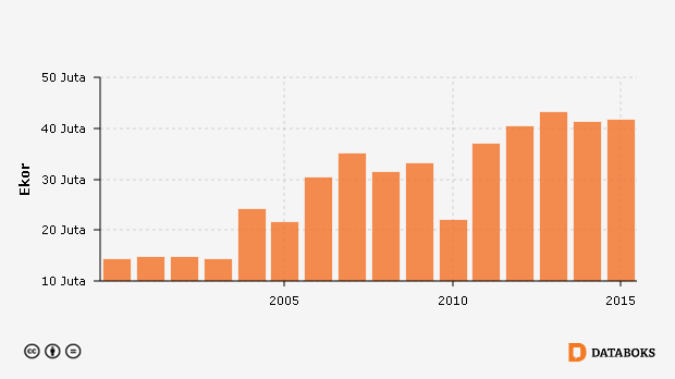 Populasi Ayam Ras Petelur menurut Provinsi di Jawa Timur 2000 - 2015