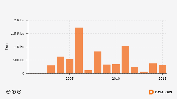 Produksi Daging Ayam Ras Pedaging menurut Provinsi di Maluku Utara 2000 - 2015