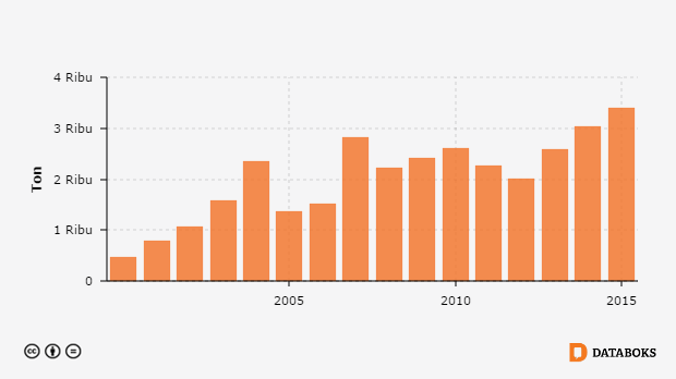 Produksi Daging Ayam Ras Petelur menurut Provinsi di DI Yogyakarta 2000 - 2015