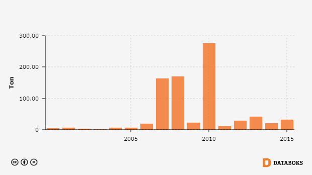 Produksi Daging Ayam Ras Petelur menurut Provinsi di Kalimantan Tengah 2000 - 2015