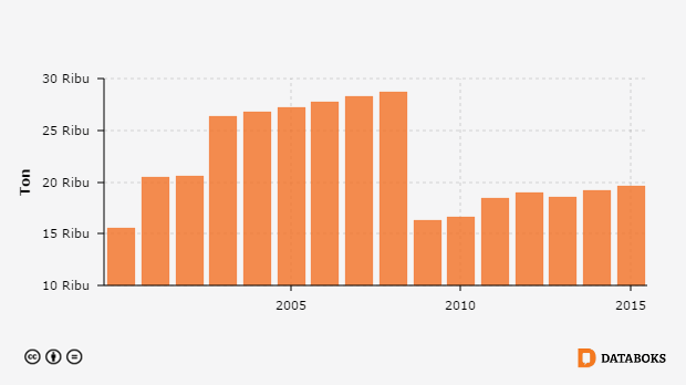 Produksi Telur Ayam Buras menurut Provinsi di Jawa Timur 2000 - 2015