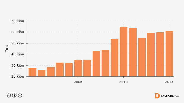 Produksi Telur Itik/Itik Manila menurut Provinsi di Jawa Barat 2000 - 2015