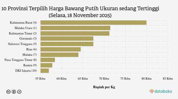 (Baca: Harga Bawang Putih Ukuran sedang di Maluku Utara Rp.71.450 per Kg (Selasa, 18 November 2025))