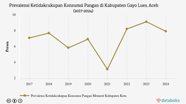 Badan Pusat Statistik (BPS) melaporkan, prevalensi ketidakcukupan pangan (Prevalence of Undernourishment/PoU) di Kabupaten Gayo Lues, Aceh mencapai 7,97% pada 2024.
