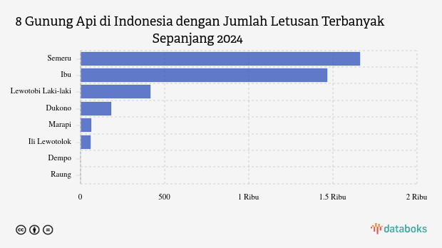 Selama tahun 2025, MAGMA Indonesia telah merekam 3.848 letusan/erupsi gunung api di seluruh Indonesia. Gunung Semeru di Jawa Timur paling banyak erupsi (1.662 kali letusan) sedangkan Gunung Ibu erupsi 1.464 kali.
