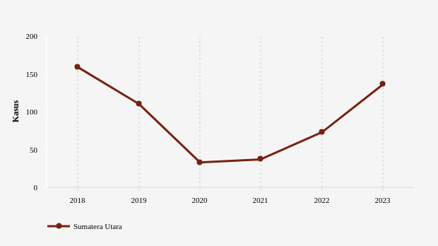 Jumlah perceraian di Sumatera Utara tercatat 136 kasus data per 2023. Untuk tiga tahun terakhir, jumlah perceraian tercatat naik. Adapun pertumbuhan selama lima tahun terakhir, tercatat cukup tinggi di angka 4,33%.