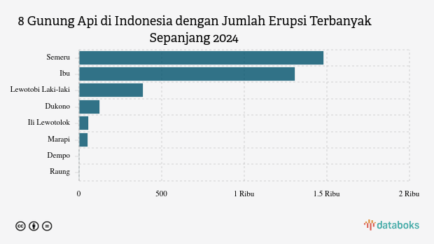 Selama tahun 2025, MAGMA Indonesia telah merekam 3.400 letusan/erupsi gunung api di seluruh Indonesia. Gunung Semeru di Jawa Timur paling banyak erupsi (1.478 kali letusan) sedangkan Gunung Dukono erupsi 124 kali.