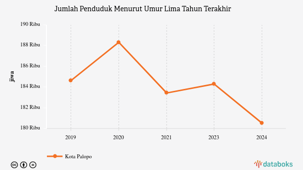 Jumlah penduduk di Kota Palopo tercatat 180,52 ribu jiwa data per 2024. Untuk data terakhir ini, jumlah penduduk mengalami penurunan. Selama lima tahun terakhir, rata-rata pertumbuhan tahunan (CAGR) jumlah penduduk di wilayah ini turun 0,45%. Pertumbuhan ini lebih rendah dibandingkan dengan pertumbuhan lima tahun sebelumnya yang tercatat 1,84%.
