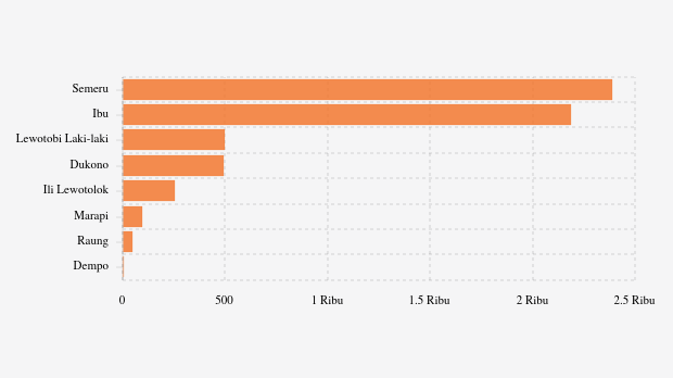 Selama tahun 2025, MAGMA Indonesia telah merekam 5.972 letusan/erupsi gunung api di seluruh Indonesia. Gunung Semeru di Jawa Timur paling banyak erupsi (2.391 kali letusan) sedangkan Gunung Ibu erupsi 2.188 kali.