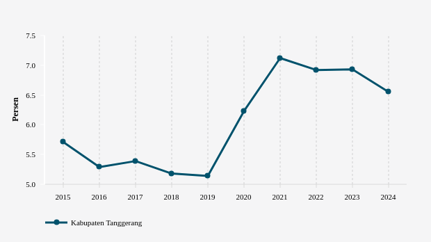 Persentase penduduk miskin di Kabupaten Tanggerang, data per 30 November 2024 tercatat 6,55 persen. Dibandingkan dengan tahun sebelumnya, persentase penduduk miskin di kabupaten/kota turun 0,38 persen