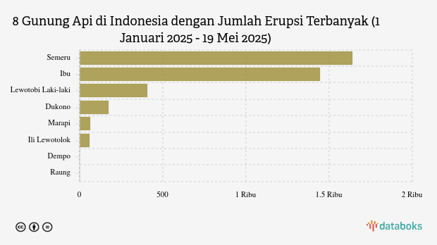 Selama tahun 2025, MAGMA Indonesia telah merekam 3.791 letusan/erupsi gunung api di seluruh Indonesia. Gunung Semeru di Jawa Timur paling banyak erupsi (1.640 kali letusan) sedangkan Gunung Ibu erupsi 1.444 kali.