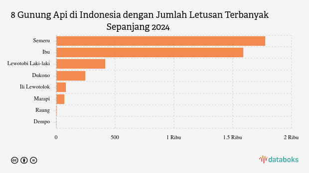 Selama tahun 2025, MAGMA Indonesia telah merekam 4.174 letusan/erupsi gunung api di seluruh Indonesia. Gunung Semeru di Jawa Timur paling banyak erupsi (1.774 kali letusan) sedangkan Gunung Ibu erupsi 1.588 kali.