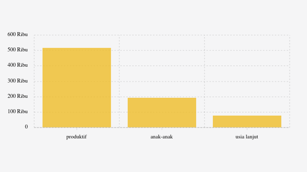- Umur lebih dari 75 tahun 13,24 ribu jiwa (1,68%)
