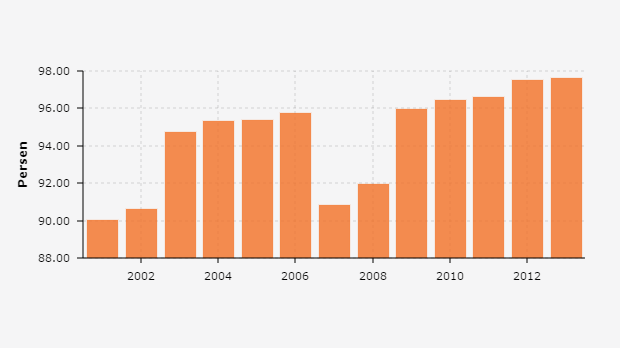 Angka Melek Huruf usia lebih dari 15 di Kabupaten Natuna, Kep. Riau 2001 - 2013