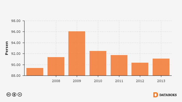 Angka Melek Huruf usia lebih dari 15 di Kota Subulussalam, Aceh 2007 - 2013