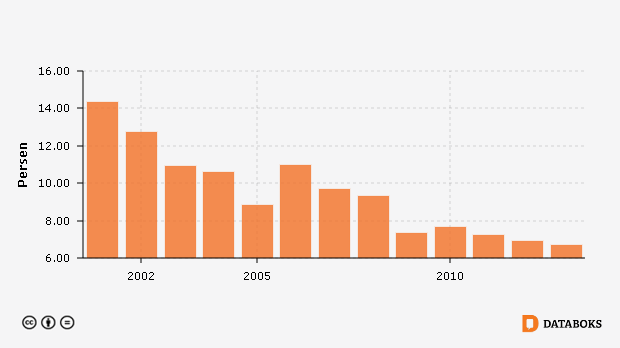 Persentase Kemiskinan di Kabupaten Hulu Sungai Selatan, Kalimantan Selatan 1999 - 2013