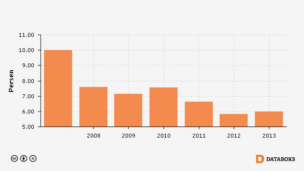 Persentase Kemiskinan di Kota Kotamobagu, Sulawesi Utara 2007 - 2013