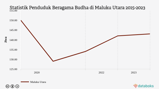 Penduduk beragama Budha di Provinsi Maluku Utara, data per 31 Desember 2023 tercatat 143 jiwa. Dibandingkan dengan tahun sebelumnya, jumlah penduduk memeluk agama Budha di provinsi naik satu jiwa