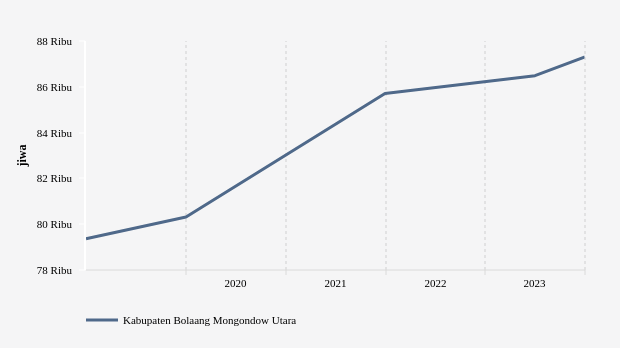 Jumlah penduduk di Kabupaten Bolaang Mongondow Utara tercatat 87.301 jiwa data per 2023. Angka ini bertambah dibanding 2021 dan lebih tinggi dibanding Desember 2019. Dibandingkan dengan lima tahun sebelumnya, rata-rata pertumbuhan tahunan (CAGR) wilayah ini tercatat lebih tinggi. Adapun pertumbuhan lima tahun terakhir, tercatat diangka 2,16%.