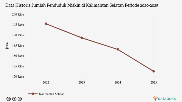Jumlah penduduk miskin di Kalimantan Selatan pada Maret 2025, berkurang 7.480 jiwa menjadi 172,72 ribu jiwa dibandingkan dengan September 2024. Sementara jika dibandingkan dengan Maret 2024, Jumlah penduduk miskin juga tercatat turun dari sebelumnya yang mencapai 183,31 ribu jiwa.