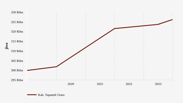Jumlah penduduk di kabupaten Tapanuli Utara tercatat 326,2 ribu jiwa data per Desember 2023. Angka ini bertambah dibanding Juni 2023 dan lebih tinggi dibanding Desember 2021. Dibandingkan dengan lima tahun sebelumnya, rata-rata pertumbuhan tahunan (CAGR) wilayah ini tercatat lebih tinggi. Adapun pertumbuhan lima tahun terakhir, tercatat diangka 1,7%.