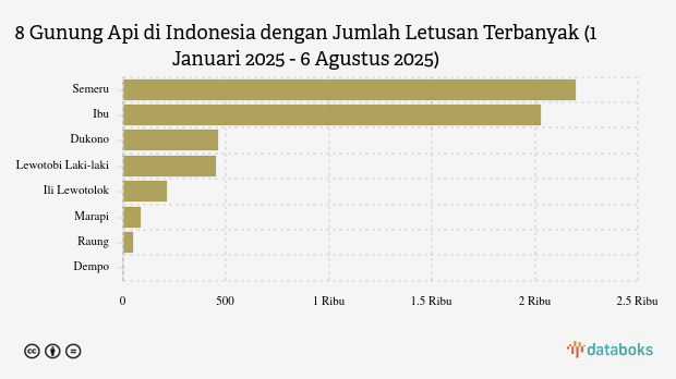 Selama tahun 2025, MAGMA Indonesia telah merekam 5.482 letusan/erupsi gunung api di seluruh Indonesia. Gunung Semeru di Jawa Timur paling banyak erupsi (2.196 kali letusan) sedangkan Gunung Ili Lewotolok erupsi 212 kali.