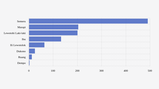 Gunung Lewotobi Laki-laki di Nusa Tenggara Timur kembali erupsi pada Sabtu (15/06) pukul 16.27 WITA. Dalam sepekan terakhir, gunung api ini masih belum terekam lagi.