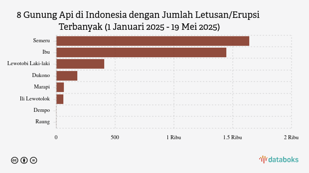 Selama tahun 2025, MAGMA Indonesia telah merekam 3.793 letusan/erupsi gunung api di seluruh Indonesia. Gunung Semeru di Jawa Timur paling banyak erupsi (1.640 kali letusan) sedangkan Gunung Dukono erupsi 176 kali.
