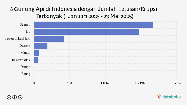 Selama tahun 2025, MAGMA Indonesia telah merekam 3.869 letusan/erupsi gunung api di seluruh Indonesia. Gunung Semeru di Jawa Timur paling banyak erupsi (1.671 kali letusan) sedangkan Gunung Ibu erupsi 1.472 kali.