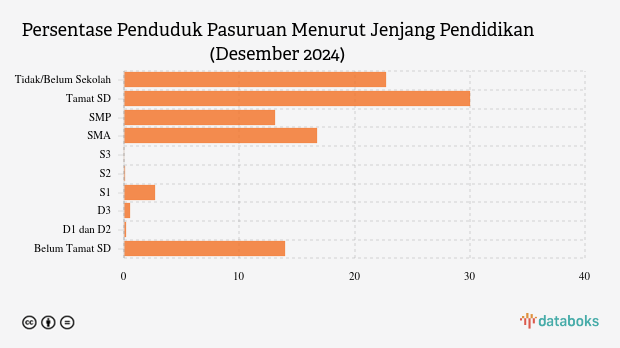 Berikut ini rincian jumlah penduduk Kabupaten Pasuruan, Jawa Timur menurut jenjang pendidikan per Desember 2024.