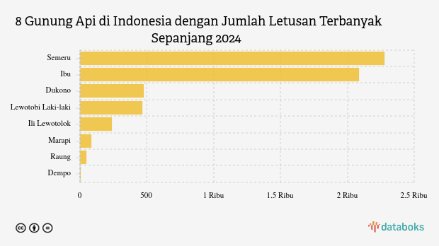 Selama tahun 2025, MAGMA Indonesia telah merekam 5.682 letusan/erupsi gunung api di seluruh Indonesia. Gunung Semeru di Jawa Timur paling banyak erupsi dengan 2.277 kali letusan.