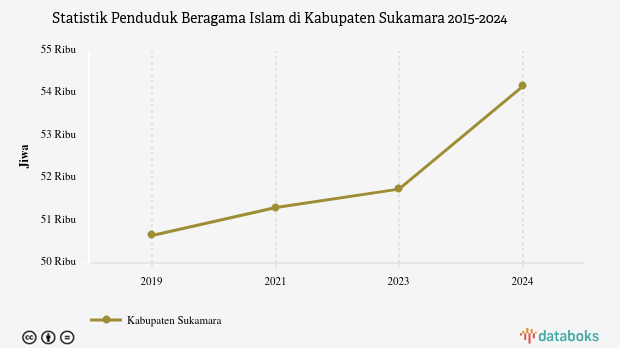 Penduduk beragama Islam di Kabupaten Sukamara, data per 31 Desember 2024 tercatat 54.173 jiwa. Jumlah ini naik 2.431 jiwa dibandingkan dengan tahun sebelumnya yang dilaporkan 51.742 jiwa.
