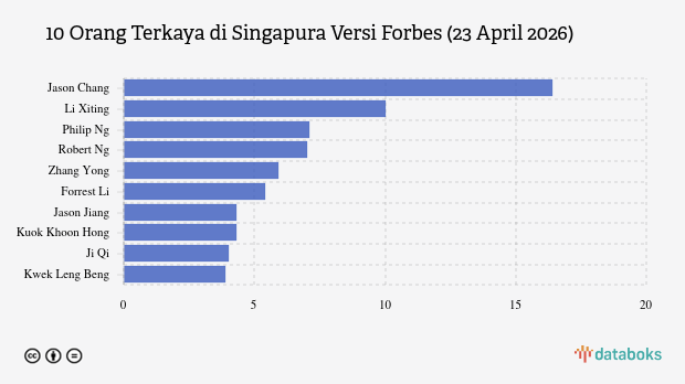 Berikut daftar lengkap 10 orang terkaya di Singapura per Kamis, 23 April 2026 versi Forbes.