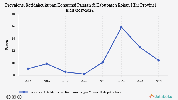 Badan Pusat Statistik (BPS) melaporkan, prevalensi ketidakcukupan pangan (Prevalence of Undernourishment/PoU) di Kabupaten Rokan Hilir, Riau mencapai 10,47% pada 2024.