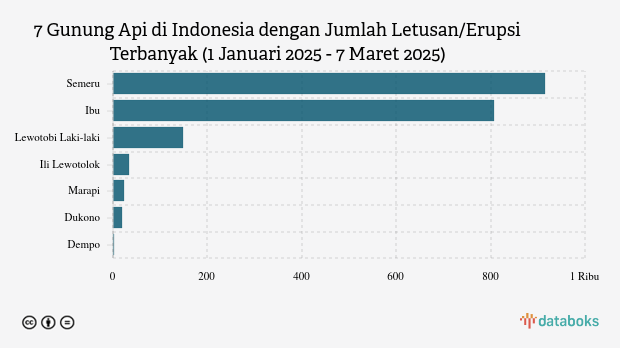 Selama tahun 2025, MAGMA Indonesia telah merekam 1.950 letusan/erupsi gunung api di seluruh Indonesia. Gunung Semeru di Jawa Timur paling banyak erupsi (916 kali letusan) sedangkan Gunung Lewotobi Laki-laki erupsi 148 kali.