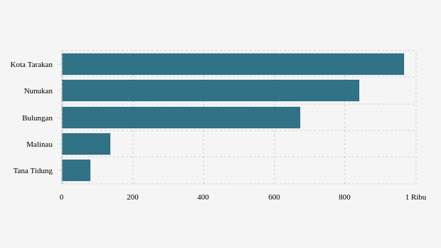 Rerata vaksinasi tiga kabupaten/kota teratas dengan angka di atas 1.000 dosis adalah kota Tarakan, Nunukan dan Bulungan dengan masing-masing nilai 966 dosis, 840 dosis dan 673 dosis.