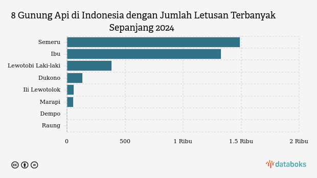 Selama tahun 2025, MAGMA Indonesia telah merekam 3.443 letusan/erupsi gunung api di seluruh Indonesia. Gunung Semeru di Jawa Timur paling banyak erupsi dengan 1.489 kali letusan.