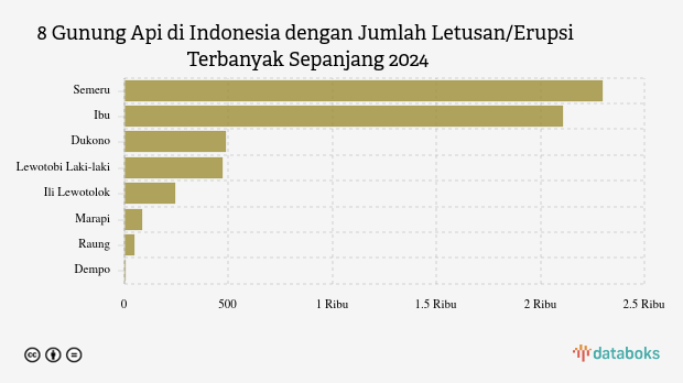 Selama tahun 2025, MAGMA Indonesia telah merekam 5.751 letusan/erupsi gunung api di seluruh Indonesia. Gunung Semeru di Jawa Timur paling banyak erupsi (2.301 kali letusan) sedangkan Gunung Lewotobi Laki-laki erupsi 472 kali.