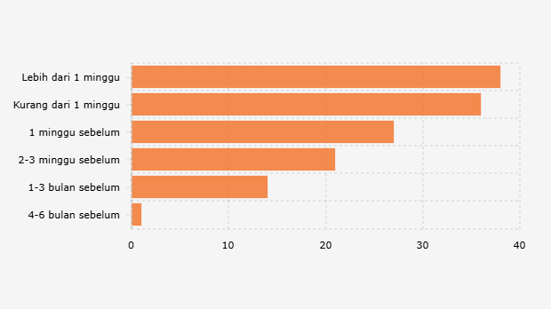 Banyak warga Indonesia berencana pesan tiket transportasi, akomodasi, dan wisata untuk mudik lebaran 2026 pada kurun lebih dari sepekan sebelum berangkat.