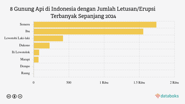 Selama tahun 2025, MAGMA Indonesia telah merekam 4.080 letusan/erupsi gunung api di seluruh Indonesia. Gunung Semeru di Jawa Timur paling banyak erupsi (1.740 kali letusan) sedangkan Gunung Ibu erupsi 1.553 kali.