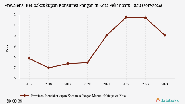 Merujuk data Badan Pusat Statistik (BPS), prevalensi ketidakcukupan pangan (Prevalence of Undernourishment/PoU) di Kota Pekanbaru, Riau mencapai 10,08% pada 2024.