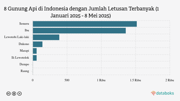 Selama tahun 2025, MAGMA Indonesia telah merekam 3.512 letusan/erupsi gunung api di seluruh Indonesia. Gunung Semeru di Jawa Timur paling banyak erupsi (1.515 kali letusan) sedangkan Gunung Dukono erupsi 140 kali.
