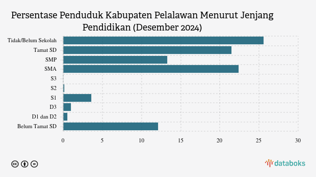 Berikut ini rincian jumlah penduduk Kabupaten Pelalawan, Riau menurut jenjang pendidikan per Desember 2024.