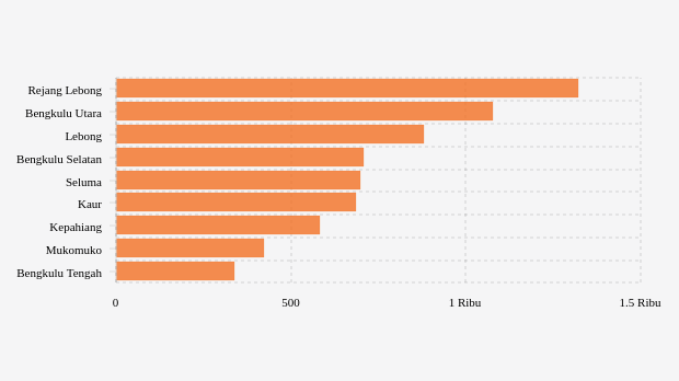 Rerata vaksinasi tiga kabupaten/kota teratas dengan angka di atas 900 dosis adalah Rejang Lebong, Bengkulu Utara dan Lebong dengan masing-masing nilai 1.323 dosis, 1.076 dosis dan 881 dosis.